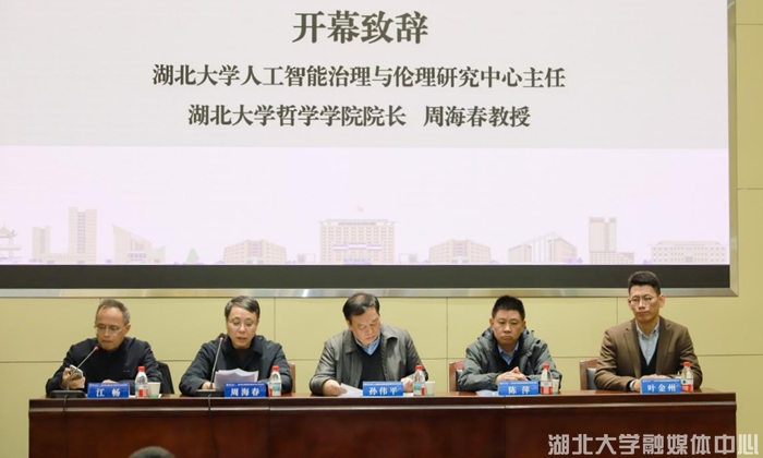 上海大学伟长学者特聘教授、国家级人才孙伟平,湖北大学人文社科资深教授江畅,湖北数字产业联合创新研究院常务副院长陈萍,湖北大学人工智能伦理与治理研究中心主任、哲学学院院长周海春教授等出席会议。